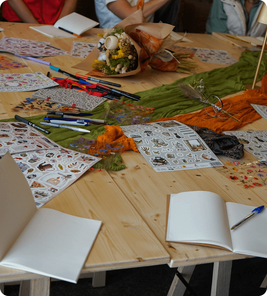 Els nostres tallers combinen pràctiques d’autoconeixement, escriptura terapèutica, expressió artística i aromateràpia per oferir-te eines diverses amb les quals connectar amb tu mateix/a, despertar la teva creativitat i aprendre a cuidar-te de forma conscient i holística. Cada taller és una invitació a expandir la teva creativitat i la teva consciència.